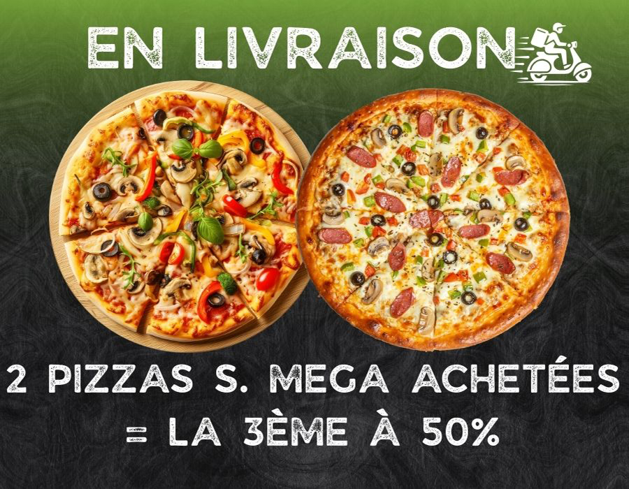 Sauce tomate, mozzarella, jambon, merguez, viande hachée, lardons.
